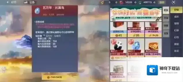 新增比翼鸟直升功能五万年元胎折扣购本次更新后,食铁兽和比翼鸟新增了元胎直升功能!商店同期上架五万年·比翼鸟元胎,限时六八折特惠出售;在家园中通过孵化巢孵化,即可获得甲甲级珍兽五万年·比翼鸟。对于低于五万年的任意年份阶段食铁兽和比翼鸟,旅者都可以赐予其对应五万年元胎,让其直接蜕变至五万年阶段,并保留所有养成状态。