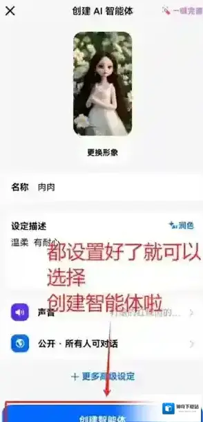 5、可以多试几次,选择最满意的,最后点击创建智能体就可以啦!头像你可以自己选也可以让ai自动帮你生成