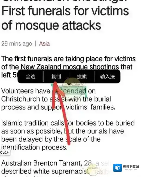 4、打开一款英语文章软件,找到英语单词长按选择复制。