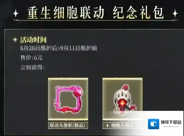 另外,商店里还上架了联动纪念礼包,礼包的价格不算高,内容也非常丰厚。购买后,除了可以获得联动头像框和细胞人骑士这些珍贵物品外,还能享受不少游戏内的便捷与加成,真的是一举多得。