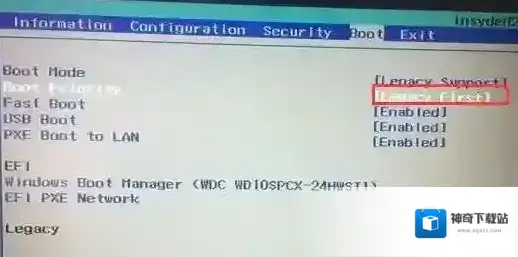 5、再把Boot Priority设置成Legacy First,按F10弹出窗口选择yes回车,如图: