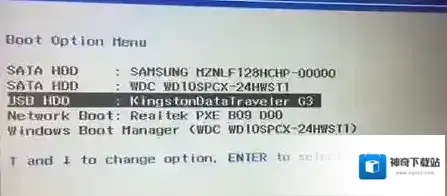 6、插入制作好的U盘启动盘,重启按F12或FN+F12调出启动管理www.winwin7.com对话框,选择USB HDD识别到U盘启动进入PE启动界面。