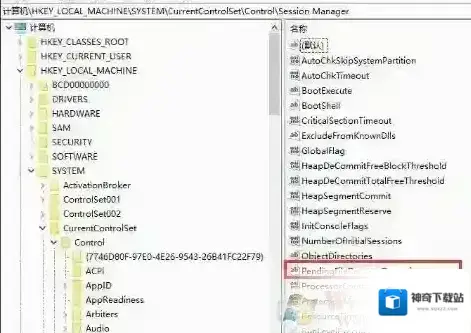 6、解压完成后,出现重启电脑对话框,我们选择“重启”启动后,电脑自动进行安装,如果还会弹出重启提示,那么我们需要修改注册表:按下win+R打开运行,输入:regedit打开注册表,在左侧依次展开:“计算机HKEY_LOCAL_MACHINESYSTEMCurrentControlSetControlSession Manager”
