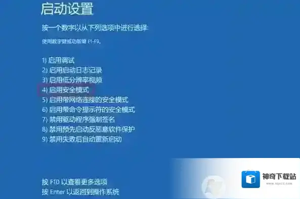 ③、待电脑重新启动后,进入启动设置菜单,此时选择安全模式启动。