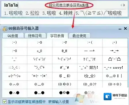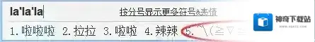 3、有时候,想要其他特殊符号,但不知道怎么打,也可以按照步骤1先打一个啦啦啦。然后在拼音上面会有一个“按分号显示更多符号 表情”。点击就能看到很多特殊符号和表情了。如下图所示。