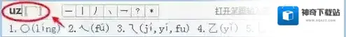 7、如果不知道那些特殊符号的拼音,可以直接打“uz”,可以打出很多特殊符号了。并且后面还会跟着有这个符号的拼音。如下图所示。