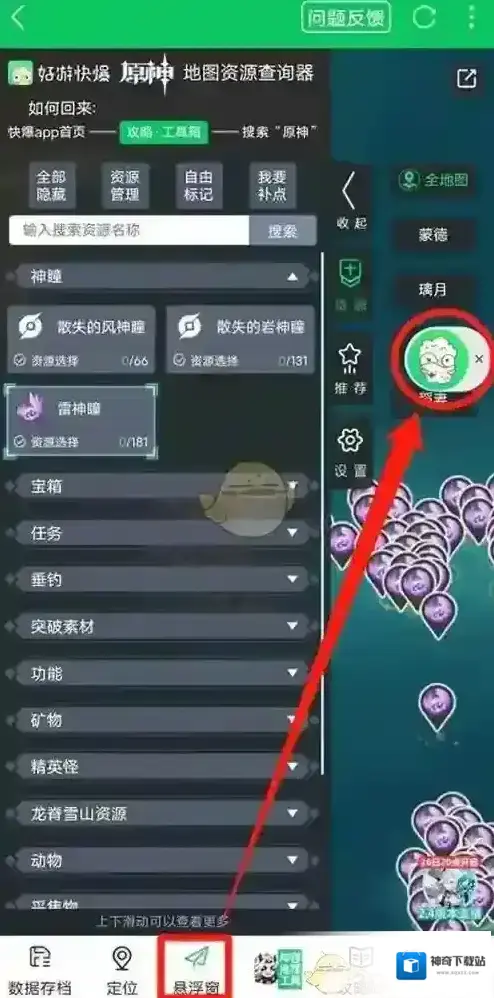 4、下载完成后,再次进入快爆地图工具,点击下方悬浮窗,可以看到悬浮窗已启动。