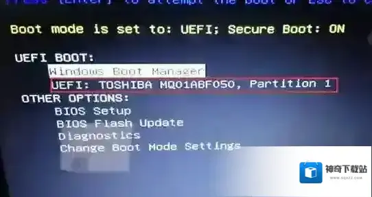 5、插入U盘启动盘,重启时不停的按下f12,打开快速引导菜单,选择识别的U盘启动回车从U盘启动,如下图: