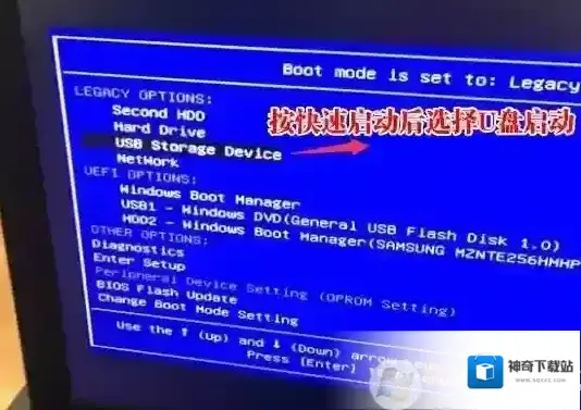 5、以上操作完成后按F10保存,选择“YES”,插入U盘启动盘,重启时不停的按下f12,打开快速引导菜单,选择识别的U盘启动回车从U盘启动,如下图所示;