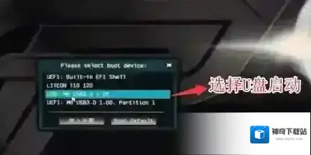 5、插入U盘启动盘,重启不停的按F11,选择识别到U盘启动项(默认有uefi U盘启动和传统模式,这里记得要uefi启动的就要制作支持uefi的U盘启动),回车,如图所示;