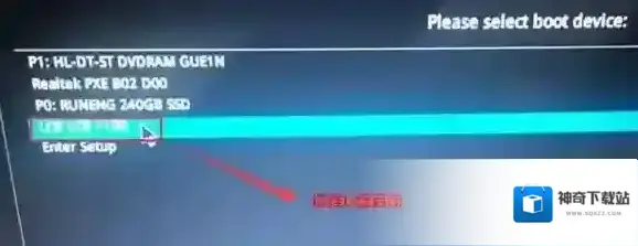 5、插入U盘启动盘,重启按ESC选择识别到U盘启动项,回车,如图: