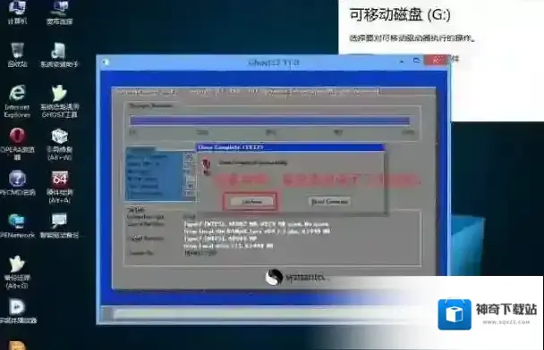 2、GHOST完成后先不要重启哦,重启也是进不去系统的,因为ESP分区中暂时还没有引导;(ghost 软件中按继续,看下图)