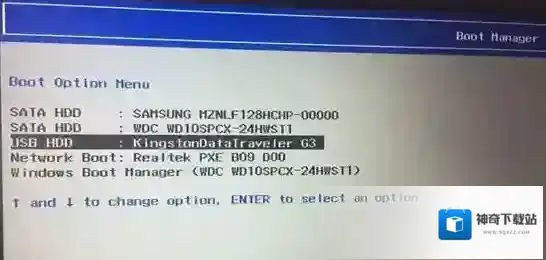 1、插入制作好的U盘启动盘,重启按F12或FN+F12调出启动管理对话框,选择USB HDD识别到U盘启动进入PE,回车进入PE: