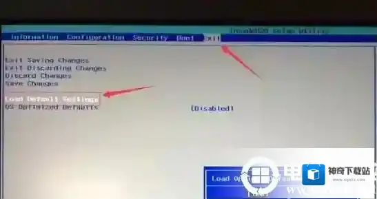 3、选择Load Default Settings回车加载设置,加载默认设置之后,部分机型需要先按F10保存重启再按F2进入BIOS继续下面的设置,如下图所示;