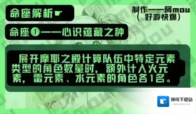 简单说☛你队里有一个相应元素的角色,就可以借一命直接吃满此效果,明显降低了Q强化效果触发条件,间接提高纳西妲的挂草/输出强度