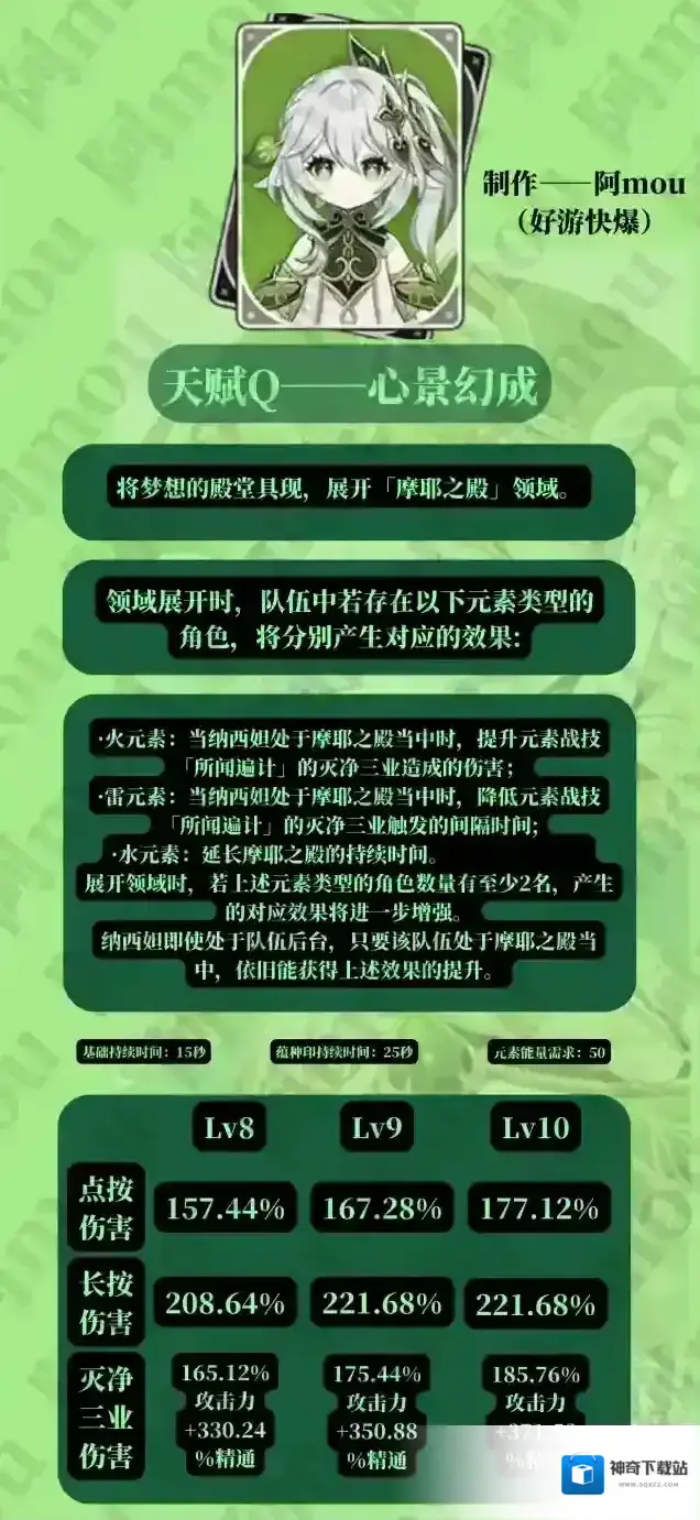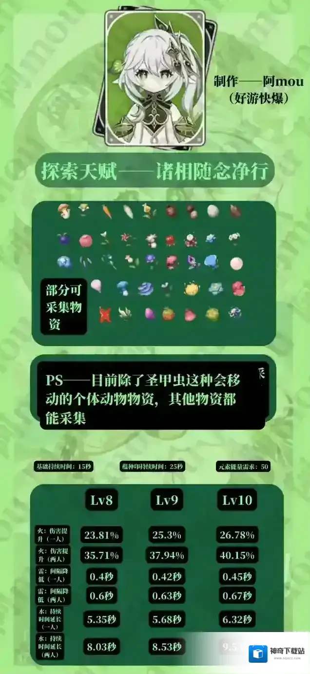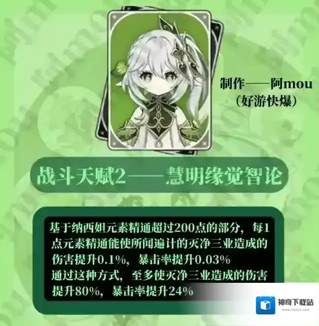 通过这两个战斗天赋的加成效果可以看出,无论是精通拐还是草副c,纳西妲零命的机制都是很完全的)
