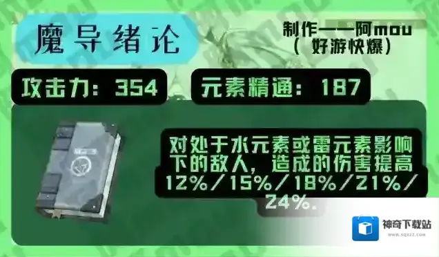 虽然三星武器白值低,精通给的倒是不少,比晚星还高一点。这个提高攻击被雷水附着的怪物伤害的被动是能在后台触发的。不过由于理论上水草反应队里受纳西妲中量草元素的影响,怪物附着经常草底,在绽放队里这个被动可能吃不充分,更适合用于激化/超激绽队。