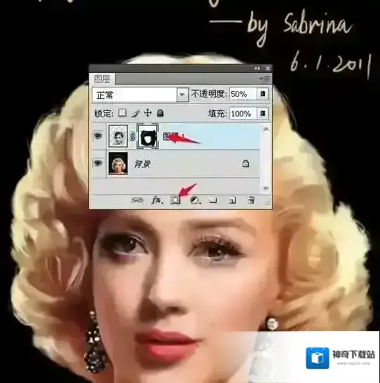 3、然后选择梦露图层,执行CTRL+V粘贴上去,如下图所示: