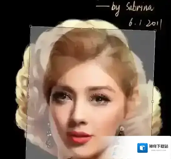 5、把人物头部自由变换放大,放到大概位置,如下图所示: