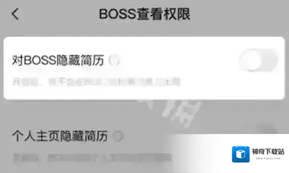 5、找到对BOSS隐藏简历,选择关闭或开启此功能。