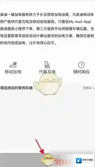 4、进入奥迪充电,点击下方的一键加电功能进入