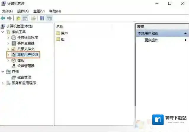 2、接下来在计算机管理窗口中,点击左侧的“本地用户和组”选项,如图所示: