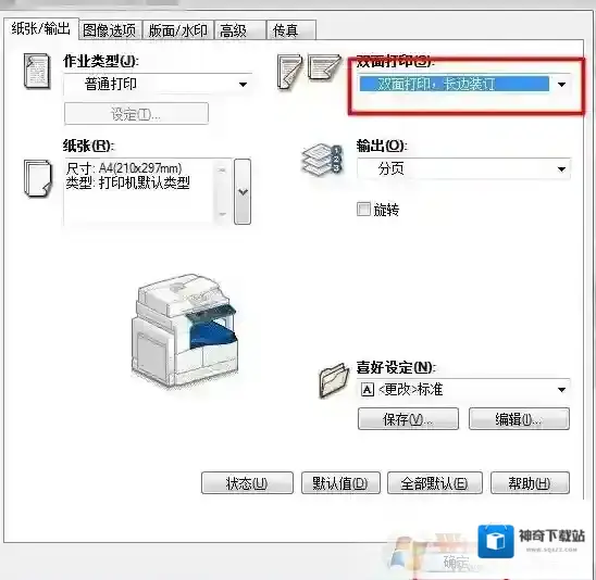 如果不行,还需要在纸张输出中设置一下双面打印;