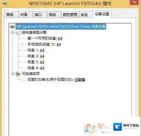 9.在“设备管理”标签页中找到“双面打印”,设为“已开启”,我当前使用的打印机没有双面打印功能,在此就不作演示了