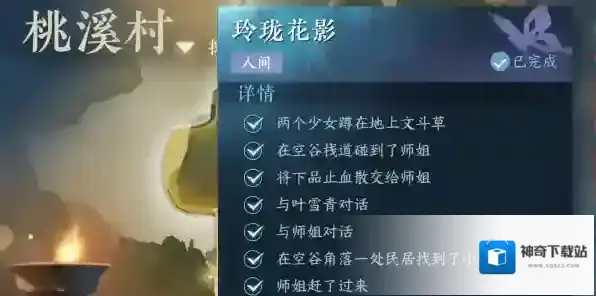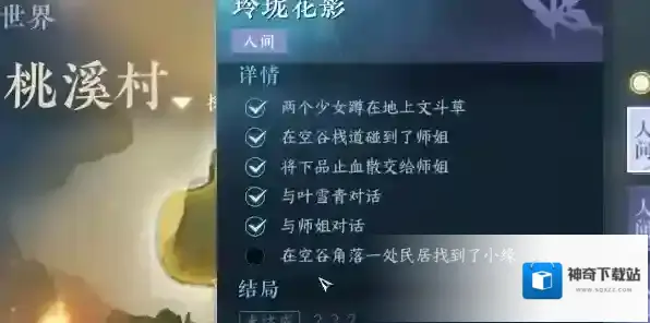 1、首先我们需要来到上述桃溪村的位置来到河边找到若檀进行对话,根据线索然后在空谷栈道找到了师姐;