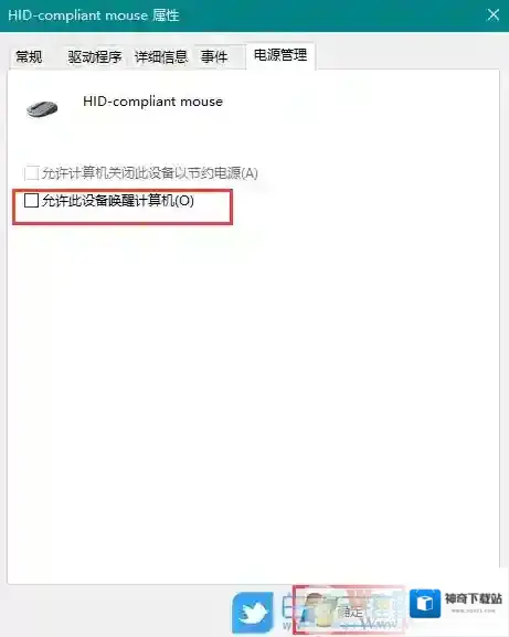 7、鼠标属性窗口中,切换到电源管理选项卡,然后勾选允许此设备唤醒计算机,然后点击确定完成修改即可。操作完成后,重启电脑,再次进入睡眠状态时,就可以通过鼠标/键盘设备唤醒电脑了;
