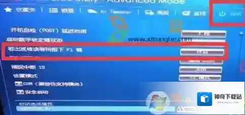 2、F10保存重启,看是不是可以过去了!如果可以那么就好了,如不行,我们还要关闭F1错误检测,再看下面3、再次进入到BIOS,找到“右出现错误等待按下F1键”然是包含 F1 的条目,然后关闭或选择为 Disable