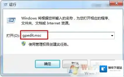 6.如果还是觉得不放心,接下来同时按键盘按键 Win和R键,调出命令提示符,输入gpedit.msc,点击确定,调出 本地组策略编辑器