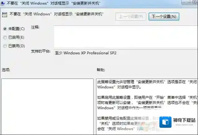 8.选择 不要在“关闭Windows”对话框显示“安装更新并关机”并双击