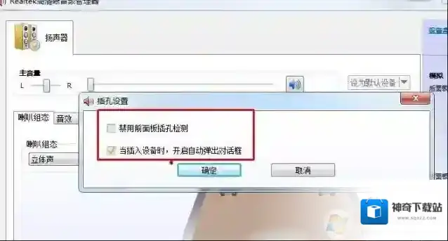 4,设置完成后确定,这样当我们插入耳机时就会弹出对话框,让我们选择输出设备,我们选择耳机即可插入耳机没有声音的解决方案了,如果设备没有问题的话,以上的2个方法是百分百能解决没有声音的问题的,希望小编的文章对大家有帮助