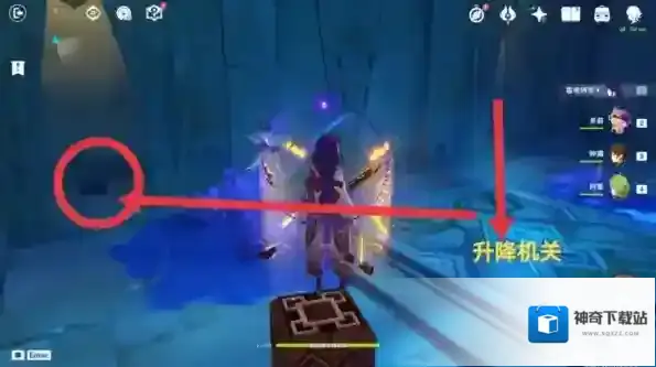 按照留言所说进行操作,先启动升降机向下,接着在向上的时候跳上去