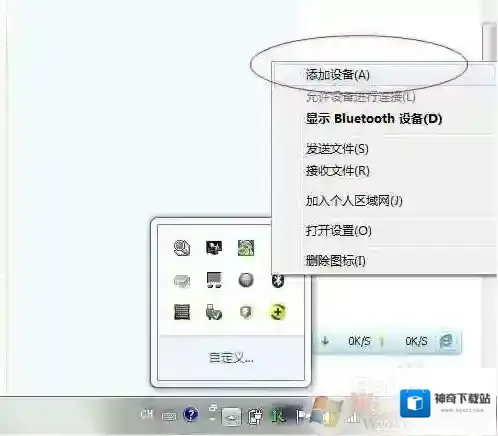 如果你的电脑有蓝牙功能的话那么在电脑的右下角就会出现一个蓝牙的图标,右击即可进行相应的设置。 如果右下角没有蓝牙图标则可以参考: