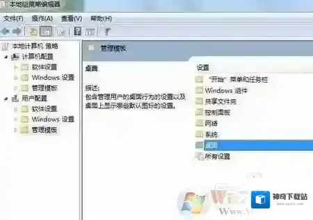 2、进入组策略页面后,点击用户配置下的“管理模板–双击“桌面”进入桌面管理页面。