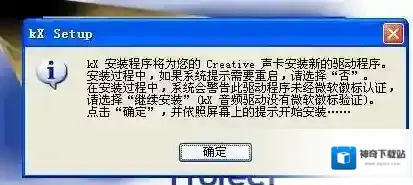 之后会出现几个提示框,大家都看一下 然后都点击“确定”同意即可,安装完成后我们需要将电脑进行重启,重启后任务栏会出现声卡驱动图标,也就是KX管理器了,以上便是winwin7小编给大家分享的关于kx驱动程序的详细安装方法!