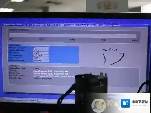 5、我们看到Ghost进入对拷页面后,弹出窗口提示将覆盖目标数据硬盘,点击“YES”即可开始对拷数据。