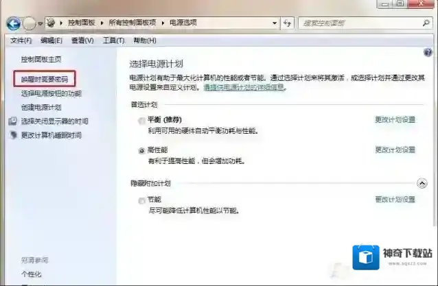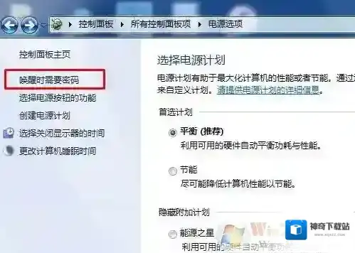3、在左侧找到唤醒时需要密码,点击进入下一个选项