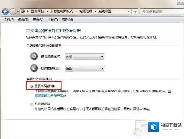 4、选择唤醒时需要密码,最后点击保存修改即可