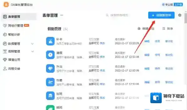 1. 进入电脑端钉钉,找到工作台–OA审批–进入管理后台–创建新表单;