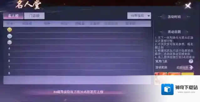 活动结束后,门派榜奖励对各等级段上榜玩家进行奖励发放。其中神启等级段前100名,89级、79级、69级每个等级段前30名均可获得海量金币绑元、动态称谓奖励等相应道具奖励!各个等级段第1名更可获得限定头衔、四级宝石袋等丰厚奖励!