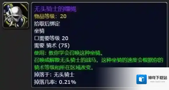 1、无头骑士的战马是魔兽世界之中一个非常优质的陆空两用坐骑。