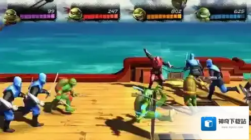 2、双人协作战斗系统支持本地分屏联机,拉斐尔双叉突刺与达芬奇双刀旋风形成技能互补,协作连招可触发合体奥义「龟甲风暴」。