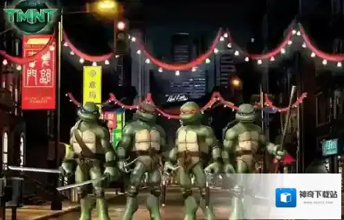 1、卡通渲染技术复刻90年代漫画质感,角色龟壳采用动态物理建模,双叉武器攻击时触发金属碰撞粒子流,神龟跳跃落地产生漫画式冲击波特效。