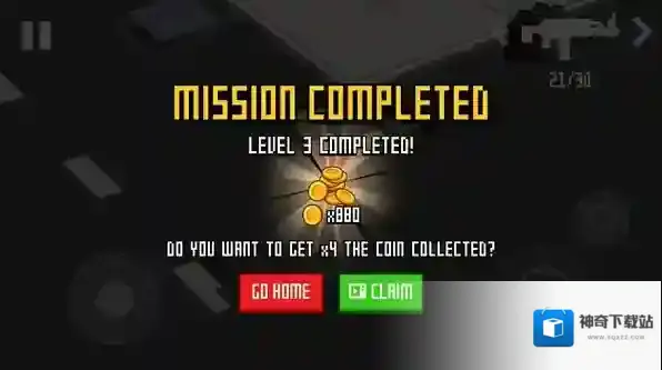 4、通关会获得金币奖励,在主界面点击背包可以消耗金币强化武器,也可以更换装备的武器。