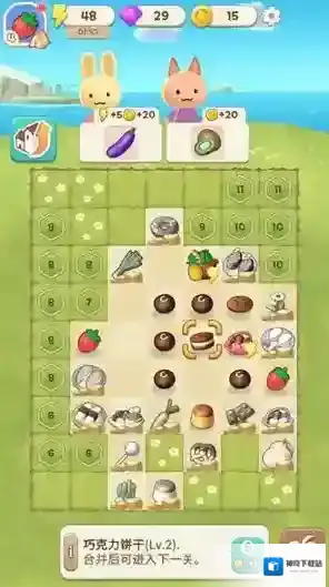 2、点击菜篮子来获得合并素材,将相同的水果或者蔬菜合并来获得更高等级的物品。