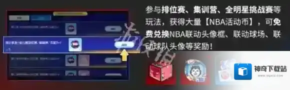 参与排位赛、集训营、全明星挑战赛等玩法,获得大量NBA活动币,可免费兑换NBA联动头像框、联动球场、联动球队头像等奖励。
