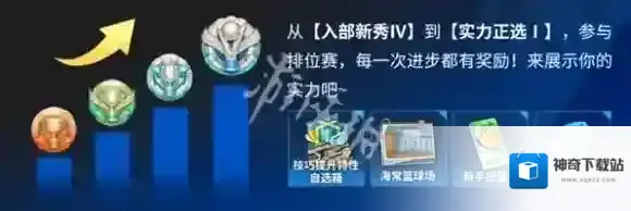 1、从入部新秀IV到实力正选1,参与排位赛,每一次进步都有奖励。